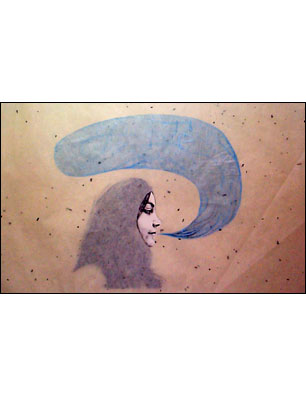 The Self-portrait is central to Ramoss installations, drawings, prints, paintings, and videos. During the 1990s, she often portrayed herself living the everyday experiences of Cubas economic isolation. In the drawing from this year on view, Ramos articulates her own physical identification with the status of the island by depicting herself as a metaphysical floating object. |